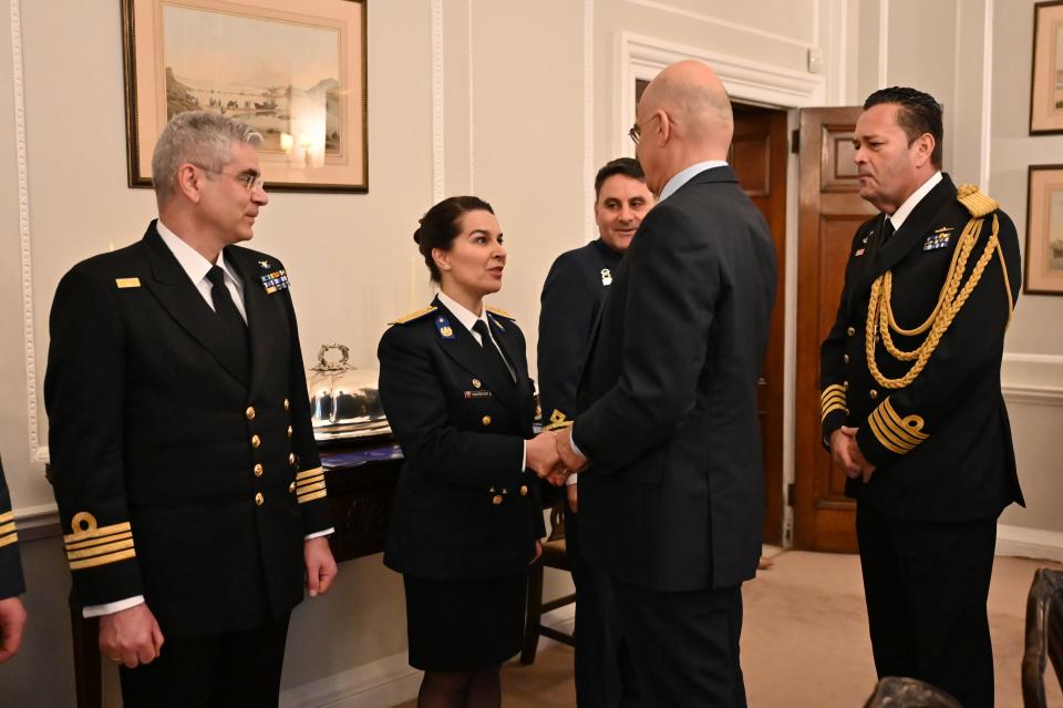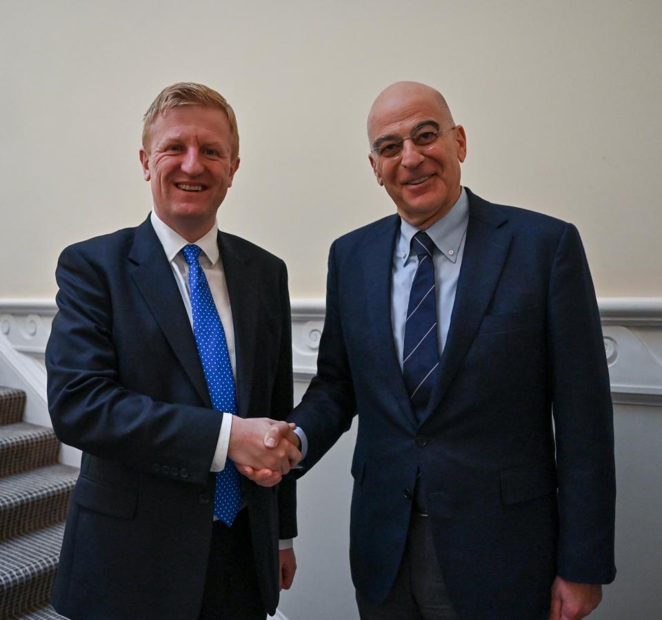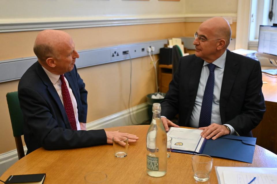 Σήμερα, ο κ.Δένδιας είχε σύντομη συνάντηση με τον Αναπληρωτή Πρωθυπουργό του Ηνωμένου Βασιλείου, κ. Όλιβερ Ντάουντιν (Oliver Dowden), ενώ συναντήθηκε επίσης με τον Σύμβουλο Εθνικής Ασφάλειας (NSA) του Ηνωμένου Βασιλείου, Σερ Τιμ Μπάρροου (Sir Tim Barrow), με τους οποίους αντάλλαξαν απόψεις για την κατάσταση ασφαλείας στην Ουκρανία, την Ανατολική Μεσόγειο, τη Μέση Ανατολή και την Ερυθρά Θάλασσα.