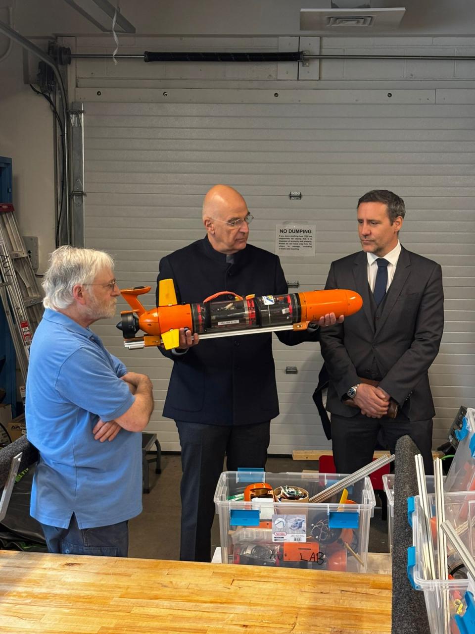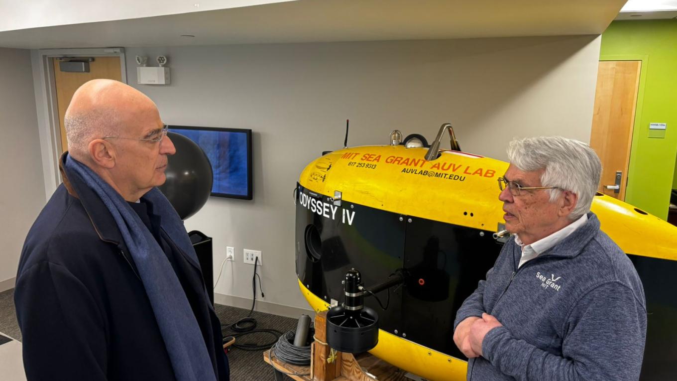 Πιο συγκεκριμένα, ο κ. Δένδιας επισκέφθηκε το φημισμένο Τεχνολογικό Ινστιτούτο Μασαχουσέτης (ΜΙΤ), που είναι ένα από τα κορυφαία πανεπιστήμια παγκοσμίως στους τομείς της Τεχνολογίας και της Καινοτομίας, όπου συναντήθηκε με τον Διευθυντή του Κέντρου Ωκεάνιας Μηχανικής στο Τμήμα Μηχανολόγων Μηχανικών, Καθηγητή Μιχαήλ Τριανταφύλλου (έδρα William I. Koch).