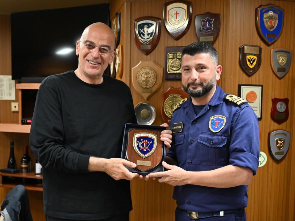 Μετά το πέρας της προαναφερθείσας εκπαιδευτικής δραστηριότητος ο κυβερνήτης της φρεγάτας Αντιπλοίαρχος Σ.Μ. πρόσφερε στον ΥΕΘΑ το θυρεό του σκάφους του και ο κ. Δένδιας ανταπέδωσε προσφέροντας το θυρεό του ΥΠΕΘΑ.