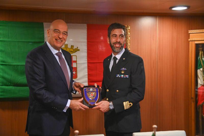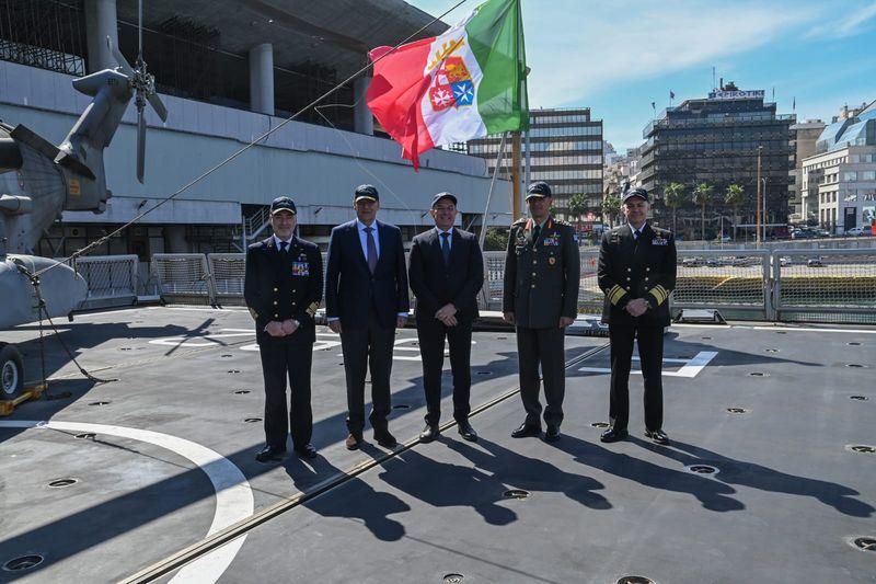 Στη φρεγάτα υποδέχθηκε τον Υπουργό Εθνικής Αμύνης και τους Αρχηγούς ΓΕΕΘΑ και ΓΕΝ, ο Αρχηγός του Ιταλικού Πολεμικού Ναυτικού, Ναύαρχος Enrico Credendino.