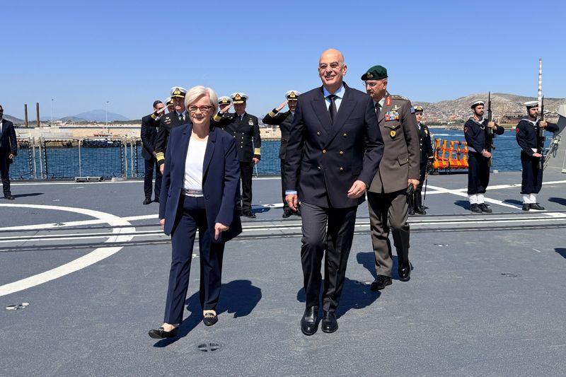 Συνάντηση εργασίας είχε σήμερα το πρωί ο Υπουργός Εθνικής Αμύνης κ. Νίκος Δένδιας με την Γαλλίδα ομόλογό του κα. Κατρίν Βοτρέν (Catherine Vautrin), στο περιθώριο της εκεί επισκέψεως των ηγετών των δύο χωρών Πρωθυπουργού κ. Κυριάκου Μητσοτάκη και Προέδρου Εμμανουέλ Μακρόν (Emmanuel Macron), ενώ στη συνέχεια συνυπέγραψε την Ανανέωση της Συμφωνίας για τη Στρατηγική Εταιρική Σχέση για τη Συνεργασία στην Άμυνα και την Ασφάλεια μεταξύ της Ελλάδος και της Γαλλίας, όπως είναι η πλήρης επίσημη ονομασία της, στο Μέγαρο Μαξίμου.