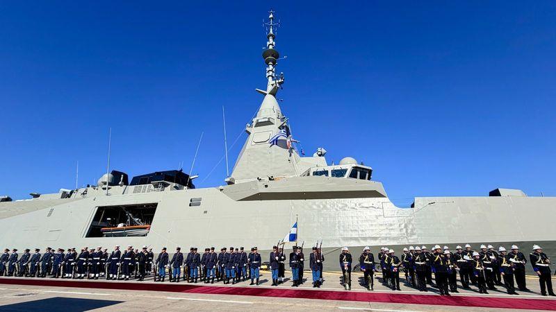 Αξίζει να σημειωθεί ότι κατά τη διάρκεια της επιθεωρήσεως από τους επισήμους του τιμητικού αγήματος του Μικτού Λόχου Αποδόσεως Τιμών (ΜΛΑΤ) και της Στρατιωτικής Μουσικής του Πολεμικού Ναυτικού, ένα ζευγάρι μαχητικών αεροσκαφών Rafale της 332 Μοίρας της 114 Πτέρυγος Μάχης από την Αεροπορική Βάση της Τανάγρας πραγματοποίησαν δύο διελεύσεις σε χαμηλό ύψος πάνω από το χώρο που είχε ναυλοχήσει η φρεγάτα και πραγματοποιείτο η τελετή, αποτελώντας έτσι μία ευχάριστη έκπληξη για όλους, καθώς δεν είχε διαρρεύσει τίποτε ως σήμερα το πρωί λίγη ώρα πριν την τελετή!