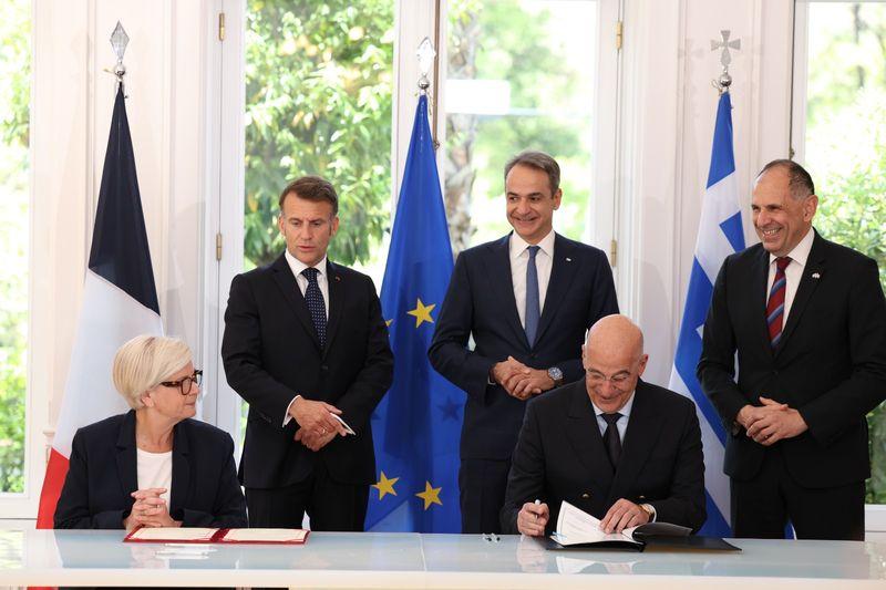 Μετά το πέρας της προαναφερθείσης συναντήσεως με την Γαλλίδα ομόλογό του, ο κ. Δένδιας (όπως και η κα. Βοτρέν) μετέβη στο Μέγαρο Μαξίμου, όπου παρουσία του Πρωθυπουργού κ. Μητσοτάκη και του Προέδρου κ. .Μακρόν, υπέγραψε μαζί με τον Υπουργό Εξωτερικών κ. Γιώργο Γεραπετρίτη, την Υπουργό Ενόπλων Δυνάμεων της Γαλλίας κα. Βοτρέν και τον Υπουργό παρά τω Υπουργώ Ευρώπης και Εξωτερικών, αρμόδιο για θέματα Ευρώπης, της Γαλλικής Δημοκρατίας κ. Μπεντζαμίν Χαντάντ (Benjamin Haddad), την «Ανανέωση της Συμφωνίας για τη Στρατηγική Εταιρική Σχέση για τη Συνεργασία στην Άμυνα και την Ασφάλεια μεταξύ της Ελλάδας και της Γαλλίας», όπως είναι η επίσημη ονομασία της.