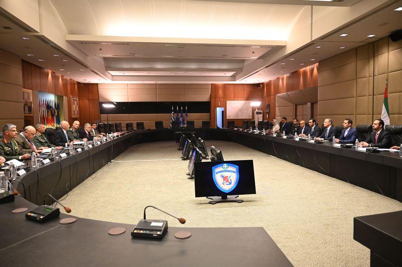 Προηγουμένως, ως προελέχθη, ο κ. Δένδιας υποδέχθηκε στο Υπουργείο Εθνικής Αμύνης, μαζί με τον ΥΦΕΘΑ κ. Θανάση Δαβάκη, τον Υπουργό Βιομηχανίας και Προηγμένης Τεχνολογίας των ΗΑΕ Δρ. Αλ Τζαμπέρ.