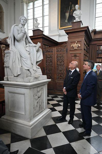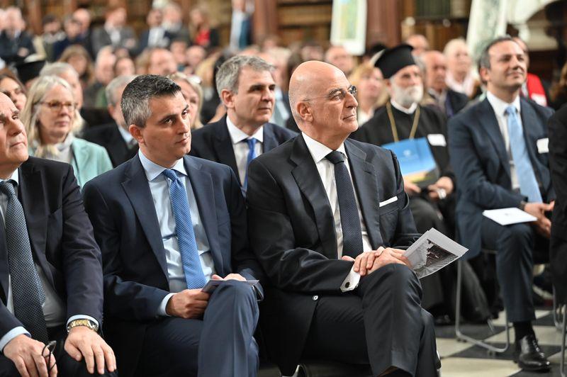 Μετά το τέλος της τελετής εις μνήμην του Λόρδου Βύρωνα, ο οποίος πέθανε στο Μεσολόγγι στις 19 Απριλίου 1824, ο κ. Δένδιας κατέθεσε στέφανο στον ανδριάντα του μεγάλου Φιλέλληνα ποιητή, στο Trinity College του Cambridge, του οποίου υπήρξε σπουδαστής.