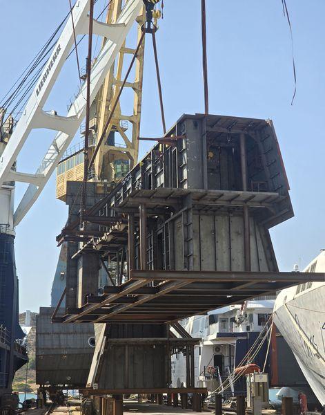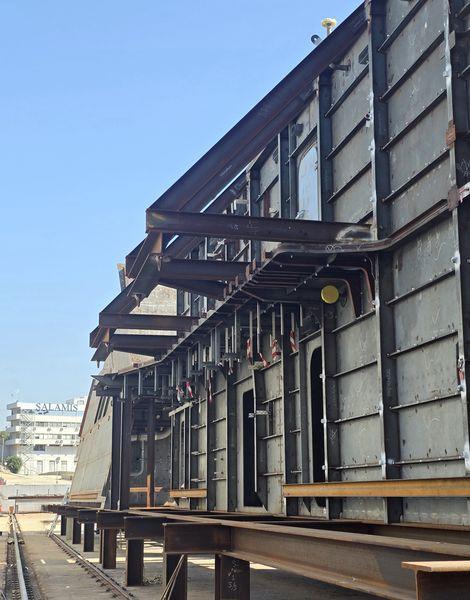 Συνολικώς, τα Ναυπηγεία Σαλαμίνος παρέδωσαν τέσσερα blocks για τη φρεγάτα “Admiral Castex”, που θα ταξιδεύσουν από την Ελλάδα με φορτηγό πλοίο για το ναυπηγείο της Naval Group στο Lorient της γαλλικής Βρετάνης, όπου και θα παραδοθούν.