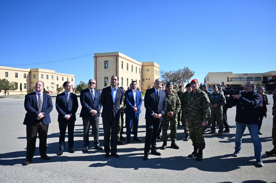 Χθες εξάλλου ο ΥΕΘΑ επισκέφθηκε την 1η Μοίρα Αλεξιπτωτιστών (1η ΜΑΛ), στην έδρα της, στο Στρατόπεδο «Αποστολάκη», στο Μάλεμε Χανίων, παρουσία των τοπικών βουλευτών Χανίων Σέβη Βολουδάκη και Αλέξανδρου Μαρκογιαννάκη.