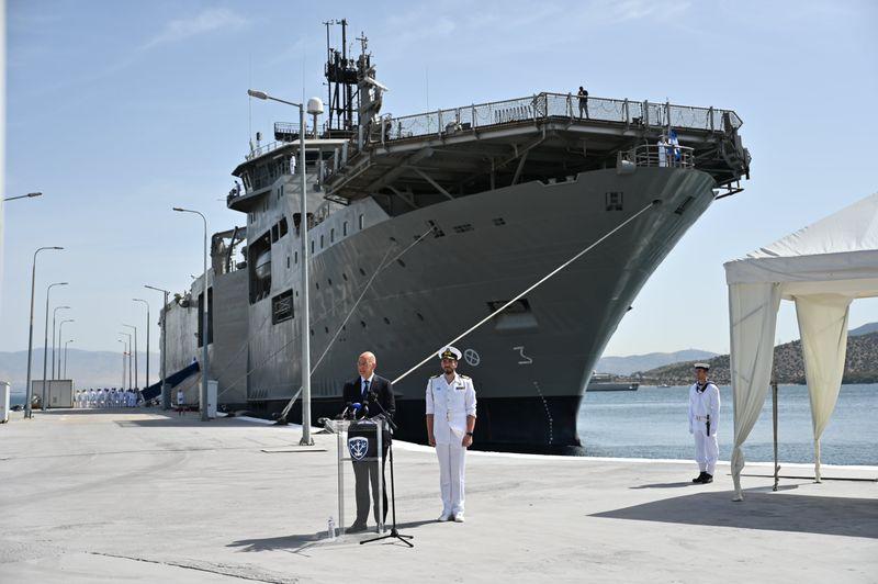 Τη «στέρεη ελπίδα», όπως τόνισε χαρακτηριστικώς, ότι «μετά από ελάχιστα χρόνια το Ελληνικό Πολεμικό Ναυτικό θα είναι ισχυρότερο παρά ποτέ στην ιστορία της Πατρίδας μας» εξέφρασε ο Υπουργός Εθνικής Αμύνης κ. Νίκος Δένδιας, κατά τον χαιρετισμό που απηύθηνε στη σημερινή τελετή ονοματοδοσίας και εντάξεως στο Πολεμικό Ναυτικό του Πλοίου Γενικής Υποστηρίξεως – Ειδικών Επιχειρήσεων (ΠΓΥ-ΕΕ) «ΠΕΡΣΕΑΣ» (Α-377), η οποία πραγματοποιήθηκε στο Ναύσταθμο Σαλαμίνος, παρουσία της Προέδρου της Ελληνικής Δημοκρατίας κ. Κατερίνας Σακελλαροπούλου, ενώ διατύπωσε πρόσκληση προς τον εφοπλιστικό κόσμο να μιμηθεί των δωρητή εφοπλιστή κ.Π.Λασκαρίδη.