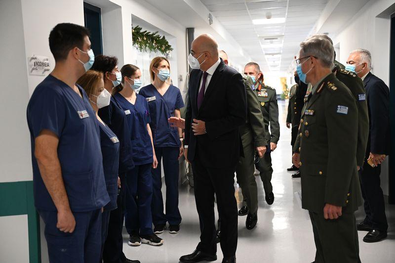 Εκεί ο κ.Δένδιας ενημερώθηκε για τη δραστηριότητα του Στρατιωτικού Νοσοκομείου από τον Διοικητή του 401 ΓΣΝΑ και στη συνέχεια αντάλλαξε ευχές με το προσωπικό και με νοσηλευόμενους ενόψει των εορτών των Χριστουγέννων.