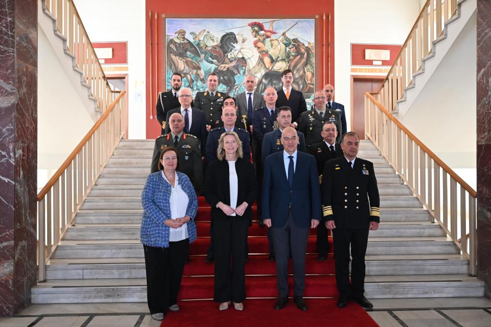 Τέλος, μετά το πέρας της συναντήσεως, οι δύο Υπουργοί μετέβησαν στο Στρατηγείο της Ευρωπαϊκής Επιχείρησης (EUNAVFOR) “ASPIDES”, όπου πρα-γματοποιήθηκε ενημέρωση από τον Διοικητή της Υποναύαρχο Βασίλειο Γρυπάρη ΠΝ, στο Κέντρο Επιχειρήσεων και τους επιτελείς του.