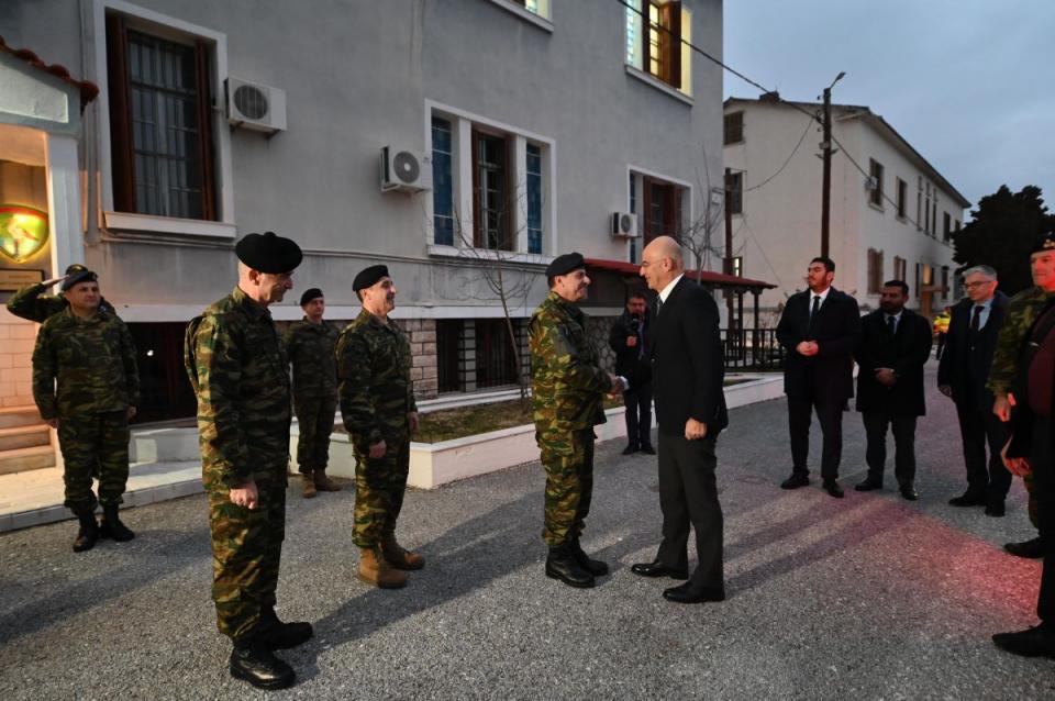 Ο κ. Δένδιας έφτασε στην Κοζάνη, συνοδευόμενος από τον Αρχηγό ΓΕΣ Αντιστράτηγο Γεώργιο Κωστίδη και τον Διοικητή του Γ΄ Σώματος Στρατού/NRDC-GR Αντιστράτηγο Αθανάσιο Γαρίνη, όπου τον υποδέχτηκε στην έδρα του Σχηματισμού ο Διοικητής του Ταξίαρχος Αναστάσιος Βασιλείου, ο οποίος στη συνέχεια τον ενημέρωσε για την αποστολή και τις επιχειρησιακές δυνατότητες της Ταξιαρχίας.