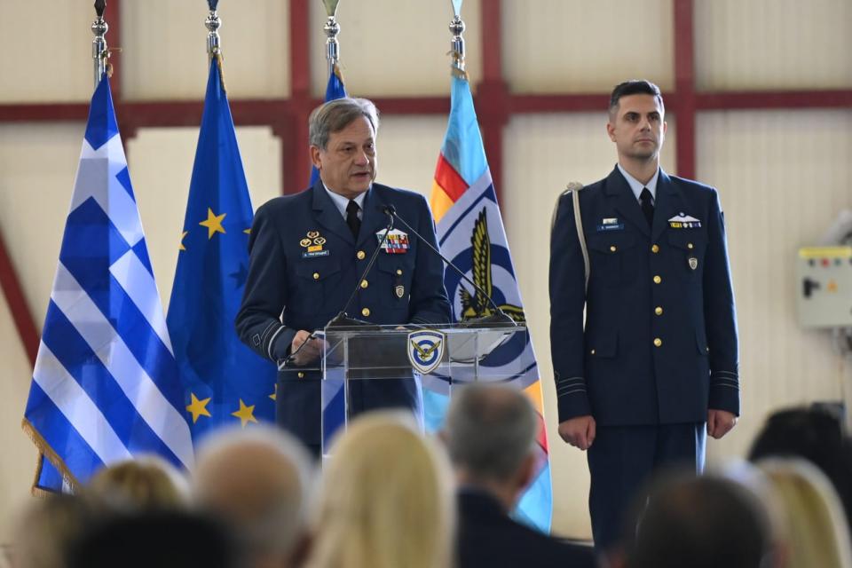 --- «Σήμερα, όμως, στον διάδρομο προσγείωσης στην Ελευσίνα, βλέπουμε  το ορατό  αποτύπωμα αυτής της προσπάθειας. Και πρέπει να σας πω ότι μου έδωσε τεράστια χαρά γιατί θυμάμαι πολύ καθαρά τις ημέρες – και δεν είναι μακριά αυτές οι ημέρες – που είχαμε ένα ή κανένα C-130 και ένα ή κανένα C-27 διαθέσιμο. Και σήμερα είδαμε 10 μεταγωγικά αεροπλάνα, 5+5, στον διάδρομο της Ελευσίνας. Και επίσης, από εκεί και πέρα υπάρχουν άλλα δύο αεροπλάνα σε τακτική συντήρηση. Δηλαδή, συνολικά, βρισκόμαστε ήδη στα 12 αεροπλάνα. Και τα Super Puma – δύο τα είδατε να ίπτανται πάνω από τον διάδρομο -, έχουν φτάσει σε διαθεσιμότητα των επτά. Δύο και από αυτά βρίσκονται σε τακτική συντήρηση.»