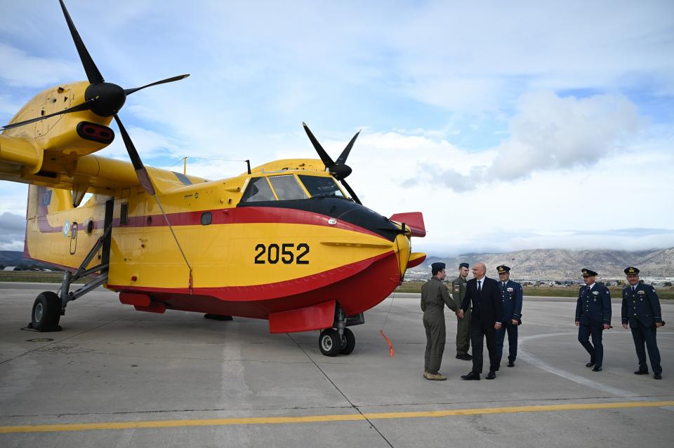 Ο ΥΕΘΑ, συνοδευόμενος από τον Αρχηγό ΓΕΑ Αντιπτέραρχο (Ι) Δημοσθένη Γρηγοριάδη, ενημερώθηκε αρχικά από τον Διοικητή της Διοικήσεως Αεροπορικής Υποστηρίξεως (ΔΑΥ) Υποπτέραρχο (Ι) Βασίλειο Μπρούμα και τον Διοικητή της 112 Πτέρυγος Μάχης (112ΠΜ) Ταξίαρχο (Ι) Ευθύμιο Σιμιτζή για την αποστολή και το έργο αεροπυροσβέσεως, αεροδιακομιδών και ερεύνης – διασώσεως καθώς και για ζητήματα συντηρήσεως, διαθεσιμοτήτων και ετοιμότητος των εναέριων πυροσβεστικών μέσων της Πολεμικής Αεροπορίας και γενικότερα των πτητικών μέσων της Μονάδος.