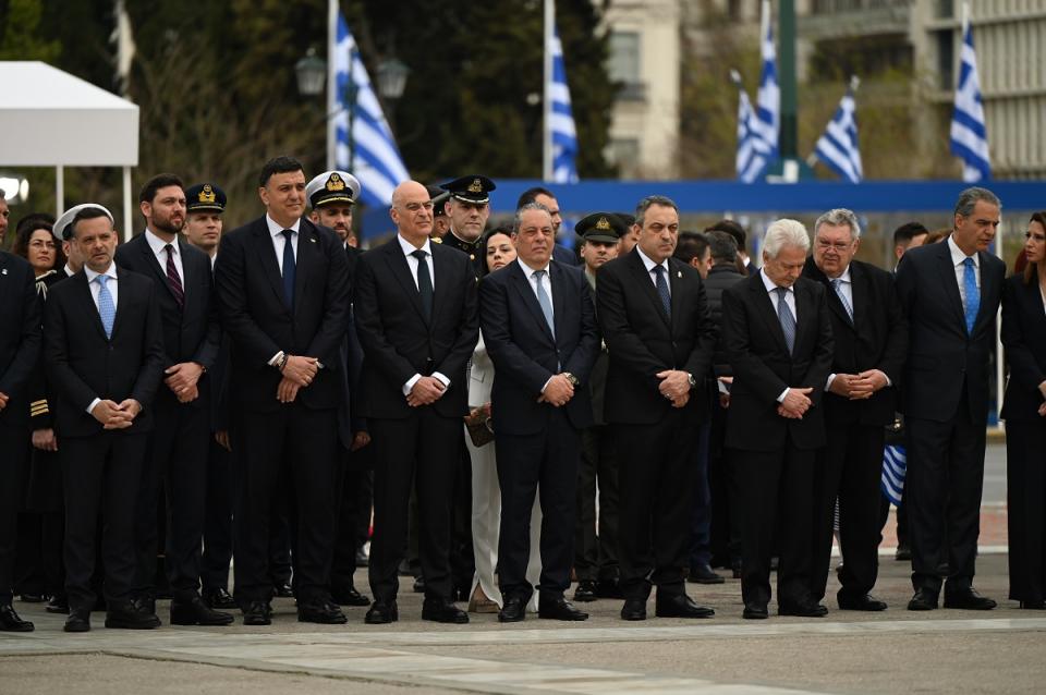 Πριν την παρέλαση ο κ. Δένδιας παρέστη στη Δοξολογία στον Καθεδρικό Ιερό Ναό Αθηνών, η οποία τελέστηκε από τον Αρχιεπίσκοπο Αθηνών και πάσης Ελλάδος κ.κ. Ιερώνυμο, και ακολούθως στην κατάθεση στεφάνου από τον Πρόεδρο της Δημοκρατίας κ. Κωνσταντίνο Τασούλα, στο Μνημείο του Άγνωστου Στρατιώτη.