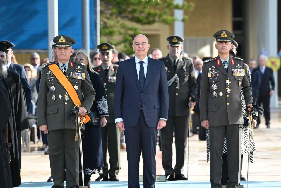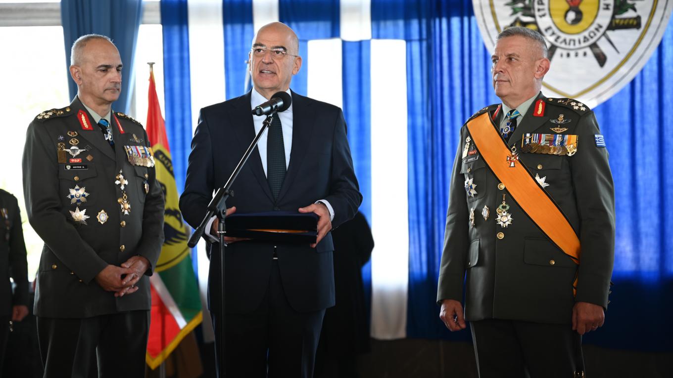 Με ευχαριστίες αλλά και ένα «παράθυρο» ανοικτό για μελλοντική συνάντηση στη μακρά πορεία, όπως χαρακτηριστικώς τόνισε, αποχαιρέτισε ο Υπουργός Εθνικής Αμύνης κ. Νίκος Δένδιας τον Επίτιμο Αρχηγό ΓΕΕΘΑ Στρατηγό Κωνσταντίνο Φλώρο, στη διάρκεια της απονομής των αναμνηστικών δώρων προς τον πρώην πλέον Αρχηγό, μετά το τέλος της επισήμου τελετής παραδόσεως παραλαβής καθηκόντων από αυτόν προν τον νέο Αρχηγό Στρατηγό Δημήτριο Χούπη, που πραγματοποιήθηκε στις εγκαταστάσεις της Στρατιωτικής Σχολής Ευελπίδων στη Βάρη Αττικής.