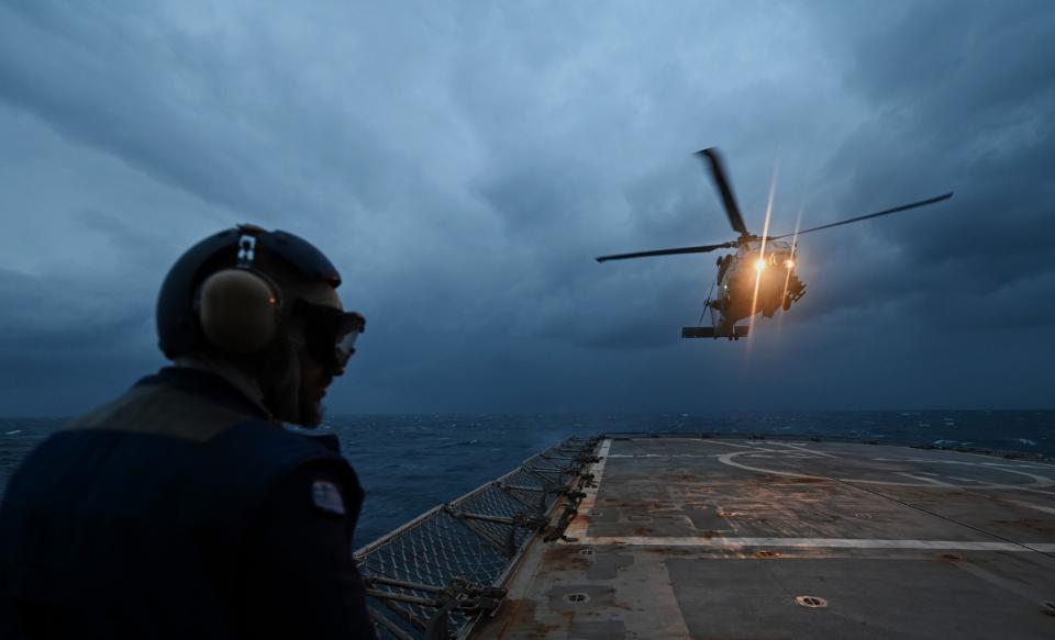 Μου είπε ο Κυβερνήτης προηγουμένως ότι θα κάνετε Πρωτοχρονιά στο σπίτι σας. Θα ήθελα όμως, πέρα από τις ευχές για τις μέρες των εορτών, να σας ευχαριστήσω για την υπηρεσία σας στην Πατρίδα. Για τον εξαιρετικό τρόπο με τον οποίο λειτουργήσατε στην Επιχείρηση «ΑΣΠΙΔΕΣ» στην Ερυθρά Θάλασσα και να σας διαβεβαιώσω αυτό που ήδη ξέρετε. Ότι είσαστε οι πάροχοι της ασφάλειας για την καθεμιά Ελληνίδα και για τον κάθε Έλληνα.