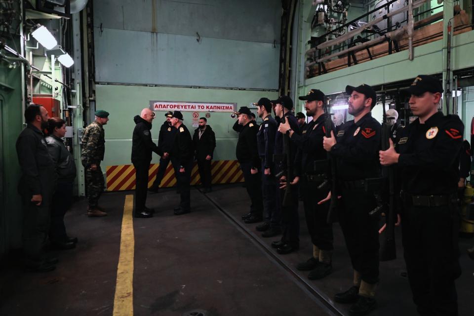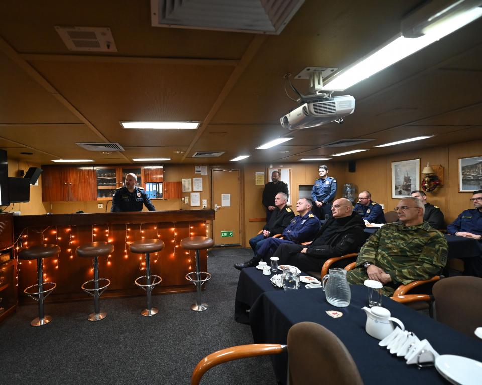 Ο ΥΕΘΑ ξεναγήθηκε στη φρεγάτα από τον κυβερνήτη της Αντιπλοίαρχο Ι.Μ., ενημερώθηκε για την αποστολή του σκάφους και συνομίλησε με μέλη του πληρώματος.