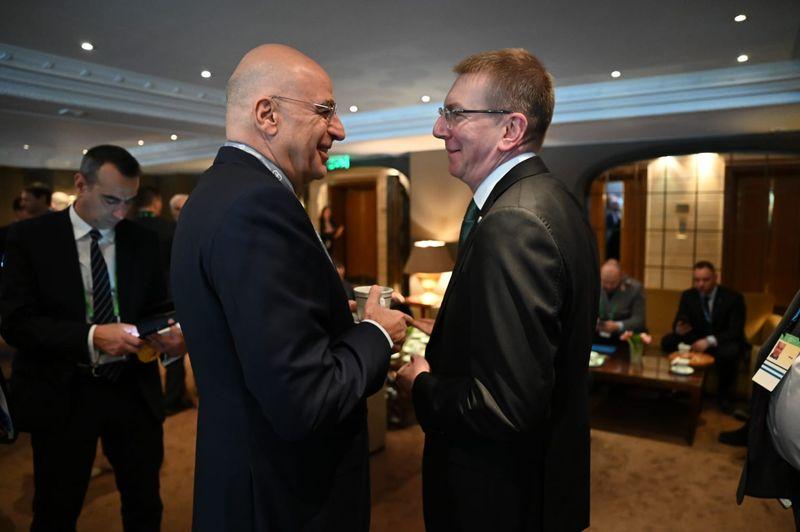 Ήδη σήμερα ο Έλλην Υπουργός, στο περιθώριο της Διασκέψεως Ασφαλείας του Μονάχου, συναντήθηκε με τον Πρόεδρο της Λετονίας κ.Έντγκαρς Ρίνκεβιτς (Edgars Rinkēvičs), «με τον οποίο μας συνδέει γνωριμία ετών, από την περίοδο που διατέλεσε υπουργός Εξωτερικών», όπως έγραψε στον προσωπικό λογαριασμό του στο «X», ο κ.Δένδιας.