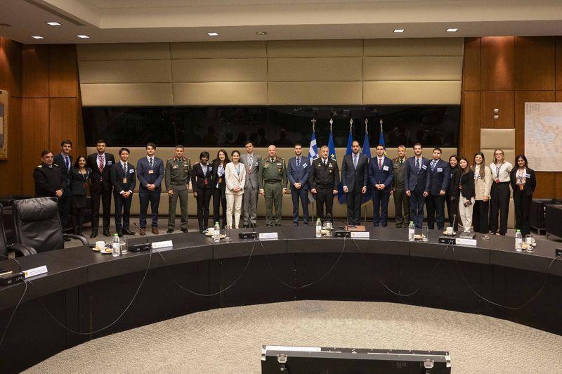 Οι σπουδαστές, παρουσία του ΥΕΘΑ, του ΥΦΕΘΑ κ. Ιωάννη Κεφαλογιάννη και του Υπαρχηγού ΓΕΕΘΑ Αντιναυάρχου Χρήστου Σασιάκου ΠΝ (ως εκπροσώπου του Αρχηγού ΓΕΕΘΑ Στρατηγού Δημήτριου Χούπη), παρακολούθησαν ενημέρωση από επιτελείς του ΓΕΕΘΑ επί θεμάτων εθνικής αμυντικής πολιτικής.