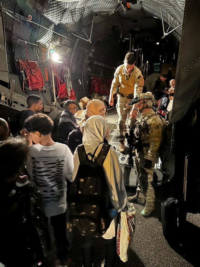 Σήμερα, Πέμπτη 27 Απριλίου 2023, απογειώθηκε από το αεροδρόμιο Ασουάν της νοτίου Αιγύπτου ένα μεταφορικό αεροσκάφος C-130H της 356 ΜΤΜ με προσωπικό Ειδικών Επιχειρήσεων (SOF) της ΔΕΠ του ΓΕΕΘΑ και προορισμό την Αεροπορική Βάση Wadi Seidna βόρεια του Χαρτούμ στο Σουδάν. Με την προσγείωση του αεροσκάφους στην αεροπορική βάση στο Σουδάν, το τμήμα SOF προέβη σε έλεγχο και εξασφάλιση της ευρύτερης περιοχής, ενώ παράλληλα συνέδραμε στην διάσωση και επιβίβαση στο αεροσκάφος 39 πολιτών, εκ των οποίων 20 από Ελλάδα, 1 από Γερμανία, 4 από Ισπανία, 5 από Ολλανδία, 1 από Σερβία, 8 από Φιλιππίνες, καθώς και 6 κατοικίδια (σκύλοι).