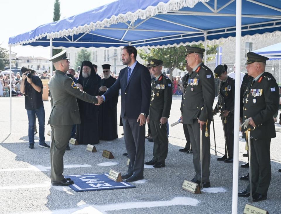 Ορκίστηκαν οι νέοι Λοχίες, απόφοιτοι της ιστορικής Σχολής Μονίμων Υπαξιωματικών (ΣΜΥ) του Στρατού Ξηράς, της Τάξεως 2024, που φέρει την ονομασία του νεκρού Ήρωος Συνταγματάρχη (ΠΖ) Βασιλείου Παπαλάμπρου αποφοίτου της Σχολής, παρουσία του Υφυπουργού Εθνικής Αμύνης κ. Γιάννης Κεφαλογιάννη, ο οποίος επέδωσε και τα πτυχία στα νέα μόνιμα στελέχη του Ελληνικού Στρατού.