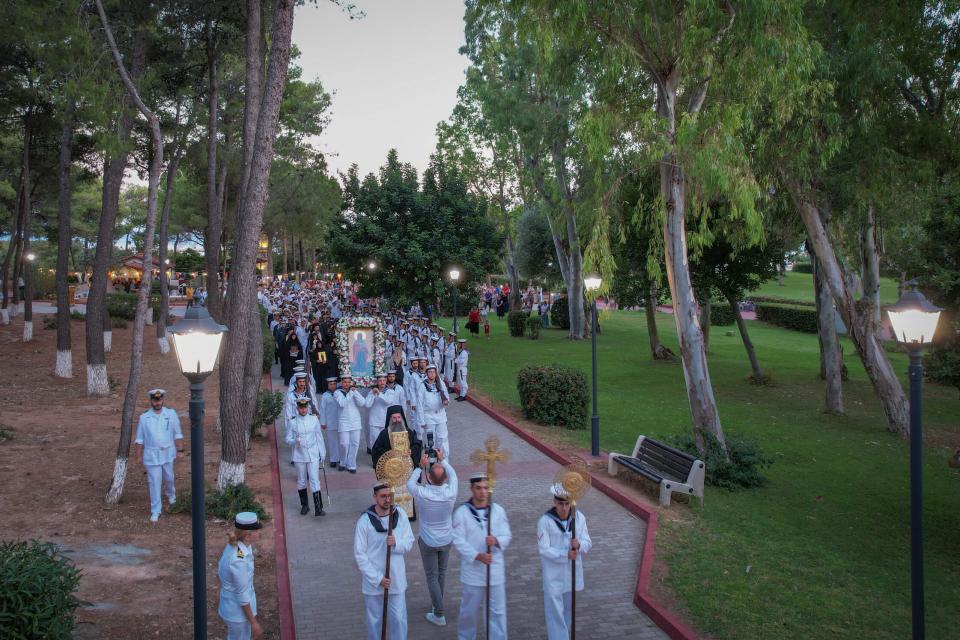 Στον πανηγυρικό εσπερινό χοροστάτησε ο Μητροπολίτης Καισαριανής, Βύρωνος και Υμηττού κ.κ Δανιήλ, ενώ παρέστησαν επίσης ο Διοικητής της Ανωτάτης Στρατιωτικής Διοικήσεως Υποστηρίξεως Στρατού (ΑΣΔΥΣ) Αντιστράτηγος Δημήτριος Μπολομύτης, ως εκπρόσωπος του Αρχηγού ΓΕΣ Αντιστρατήγου Γεωργίου Κωστίδη, ο Διοικητής της Σχολής Ικάρων Υποπτέραρχος (Ι) Γρηγόριος Καραμπιτιάνης, ως εκπρόσωπος του Αρχηγού ΓΕΑ Αντιπτεράρχου (Ι) Δημοσθένη Γρηγοριάδη, ο Διοικητής Διοικήσεως Ειδικού Πολέμου (ΔΕΠ) Αντιστράτηγος Προκόπιος Μαυραγάνης, ο Αρχηγός της ΕΛΑΣ Αντιστράτηγος Δημήτριος Μάλλιος, εκπρόσωποι των λοιπών Σωμάτων Ασφαλείας, τα μέλη του Ανώτατου Ναυτικού Συμβουλίου, καθώς και στρατιωτικό και πολιτικό προσωπικό του Πολεμικού Ναυτικού.