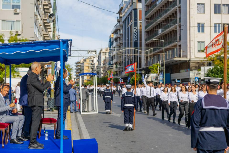 Από την πλευρά του ο Δήμαρχος Πειραιά κ. Γιάννης Μώραλης, δήλωσε: «Μια ιδιαίτερα όμορφη και γιορτινή ημέρα σήμερα στον Πειραιά. Η πόλη μας γέμισε χρώματα, σημαίες και χαμόγελα, σε μια εξαιρετική παρέλαση με τη συμμετοχή μαθητών, εκπροσώπων των τοπικών φορέων και συλλόγων, καθώς και τμημάτων των Ενόπλων Δυνάμεων. Η παρουσία του κόσμου ήταν εντυπωσιακή, δημιουργώντας μια συγκινητική ατμόσφαιρα ενότητας και υπερηφάνειας.