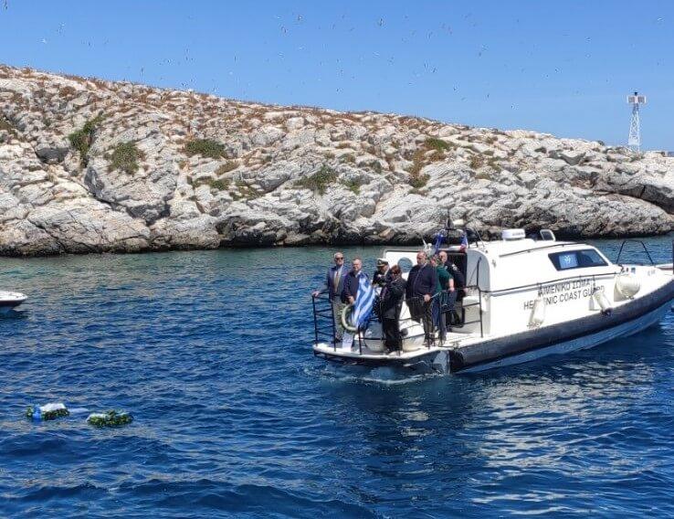 Στο πλαίσιο της εκδηλώσεως πραγματοποιήθηκε ρίψη στεφάνων στο σημείο που βυθίστηκε το άτυχο πλοίο από τον κυβερνήτη του Σκάφους Ανορθοδόξου Πολέμου – Ταχείας Μεταφοράς (ΣΑΠ-ΤΜ) «ΑΣΤΡΑΠΗ» Υποπλοίαρχο Ευάγγελο Αρβανιτάκη ΠΝ, καθώς και από τον Δήμαρχο Αιγίνης κ.Ιωάννη Ζορμπά, ο οποίος επέβαινε σε πλωτό του Λιμενικού Σώματος – Ελληνικής Ακτοφυλακής.