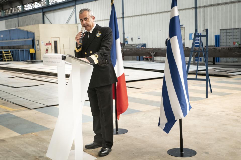 H τελετή κοπής του πρώτου ελάσματος της δεύτερης φρεγάτας FDI για το Ελληνικό Πολεμικό Ναυτικό πραγματοποιήθηκε σήμερα, Τετάρτη 13 Ιουλίου, στο ναυπηγείο της Naval Group στη Λοριάν της Γαλλίας.