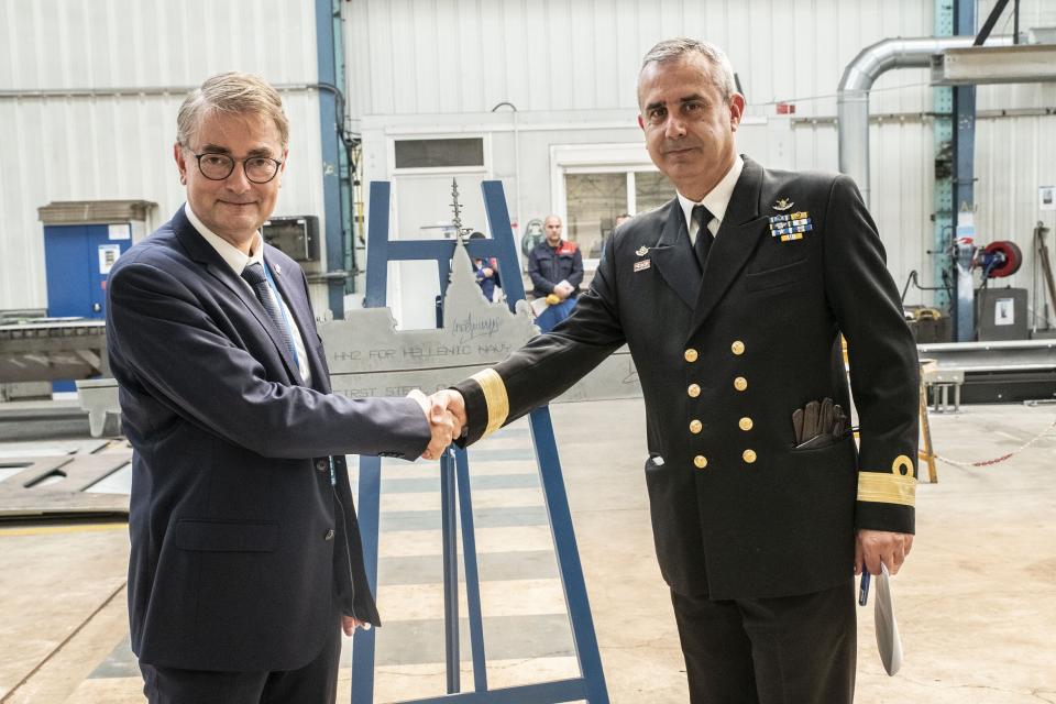 Από την πλευρά του, ο αρχιπλοίαρχος Θεοχάρης Χατζόπουλος επισήμανε ότι «η τελετή κοπής του πρώτου ελάσματος είναι ένα σημαντικό βήμα στο πρόγραμμα FDI».
