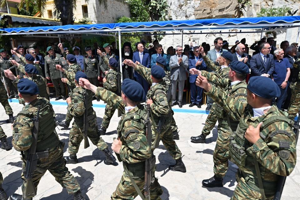 Στις τελετές για τον εορτασμό της 80ης επετείου από την υπογραφή του Πρωτοκόλλου Παραδόσεως των γερμανικών στρατευμάτων κατοχής Δωδεκανήσου, την 8η Μαΐου 1945, ο κ. Δένδιας εκπροσώπησε την Κυβέρνηση, συνοδευόμενος από τους Αρχηγούς ΓΕΕΘΑ Στρατηγό Δημήτριο Χούπη και ΓΕΣ Αντιστράτηγο Γεώργιο Κωστίδη, καθώς και τον Διοικητή ΑΣΔΕΝ Αντιστράτηγο Εμμανουήλ Θεοδώρου, παρακολούθησε τη Δοξολογία στον Μητροπολιτικό Ιερό Ναό του Τιμίου Προδρόμου, στην οποία χοροστάτησε ο Μητροπολίτης Σύμης, Τήλου, Χάλκης και Καστελλορίζου κ.κ. Χρυσόστομος Β΄, ενώ στη συνέχεια, παρακολούθησε την επιμνημόσυνη δέηση, την κατάθεση στεφάνων στο Ηρώο και την παρέλαση τμημάτων της 95 ΑΔΤΕ και μαθητών του νησιού.