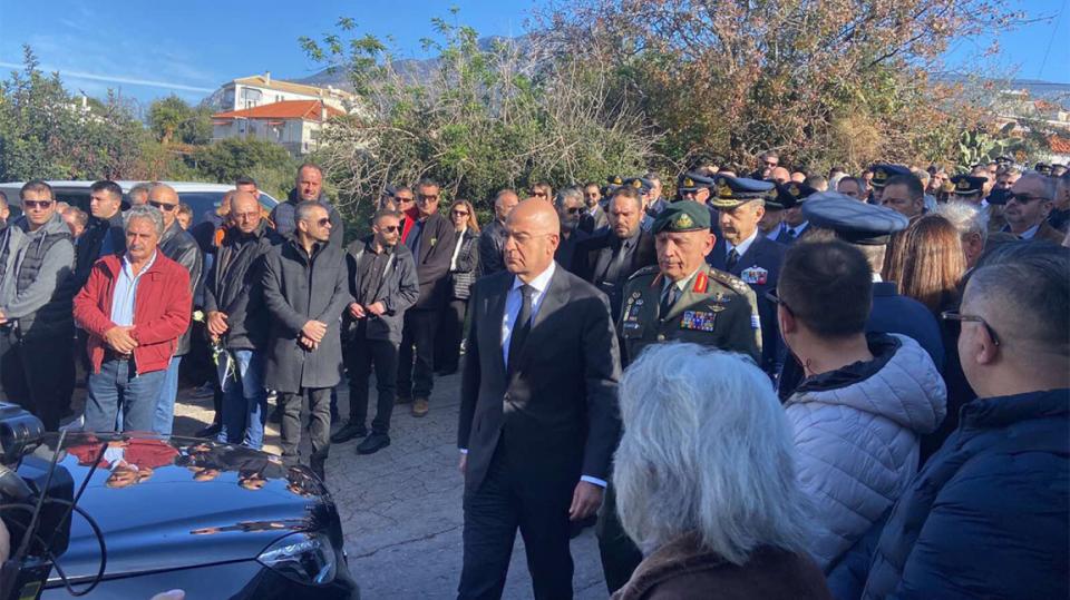 Στην κηδεία έδωσαν το παρών ο υπουργός Εθνικής Άμυνας Νίκος Δένδιας, ο αρχηγός ΓΕΕΘΑ Κωνσταντίνος Φλώρος και ο Τομεάρχης 'Αμυνας του ΣΥΡΙΖΑ Ευάγγελος Αποστολάκης.