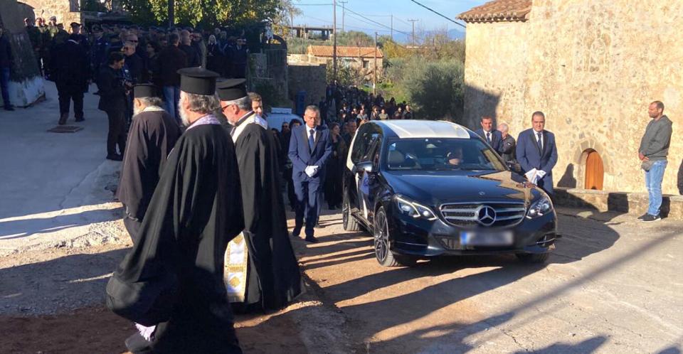 Άγημα της Αεροπορίας βρέθηκε στον ιερό ναό Κοιμήσεως της Θεοτόκου στη Μεγάλη Μαντίνεια του Δήμου Δυτικής Μάνης για να τιμήσει τον επισμηναγό, ο οποίος αφήνει πίσω του δυο ανήλικα παιδιά και τη σύζυγό του που ήταν αυτόπτες μάρτυρες της τραγωδίας.