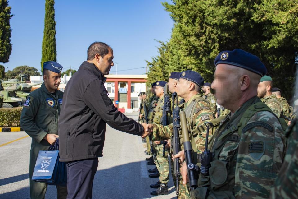 Ακολούθως, ο Υφυπουργός συνάντησε αντιπροσωπεία Εθνοφυλάκων από τα Τάγματα Εθνοφυλακής (ΤΕΘ) του Σχηματισμού, δηλαδή τα ΤΕΘ Άνω Καλαμώνα, Αρχιπόλεως, Ρόδου και Ψίνθου, συνομίλησε μαζί τους και ενημερώθηκε από τους Διοικητές των μονάδων για τις δραστηριότητές τους.