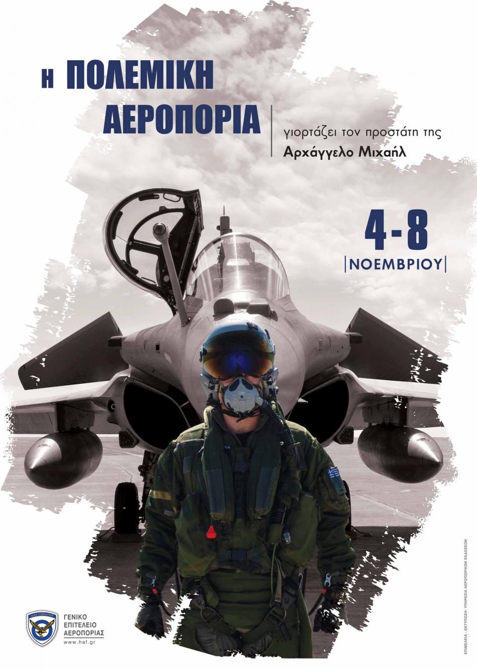 Σειρά εκδηλώσεων και δράσεων της Πολεμικής Αεροπορίας για την εορτή του Προστάτη της Αρχαγγέλου Μιχαήλ έχουν σχεδιασθεί και θα πραγματοποιηθούν σε όλη τη χώρα το διάστημα από το Σάββατο 4 ως και την Τετάρτη 8 Νοεμβρίου 2023, όπως δημοσιοποιήθηκε σήμερα από το Γενικό Επιτελείο Αεροπορίας.