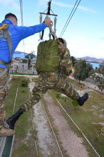 Η τελετή απονομής πτερύγων και διπλωμάτων στατικού ιμάντος στους νέους αλεξιπτωτιστές πραγματοποιήθηκε στις εγκαταστάσεις της Σχολής Αλεξιπτωτιστών, στο Στρατόπεδο «Ταγματάρχου (ΠΖ) Καίσαρ Σέεμαν» στον Ασπρόπυργο Αττικής, παρουσία του Υποδιευθυντή της Διευθύνσεως Ειδικών Δυνάμεων του ΓΕΣ (ΓΕΣ/ΔΕΔ), Ταξιάρχου Γρηγόριου Γαρουφαλιά.