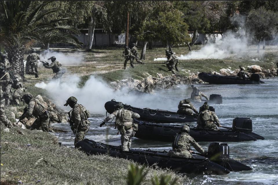«Ισχυρές Ένοπλες Δυνάμεις θωρακίζουν την εθνική μας ανεξαρτησία, προστατεύουν τα κυριαρχικά μας δικαιώματα και την εθνική κυριαρχία και αποτελούν αναγκαία προϋπόθεση ελευθερίας και ευημερίας», τόνισε ο Πρωθυπουργός Κυριάκος Μητσοτάκης κατά την επίσκεψη του σήμερα το πρωί στη Διοίκηση Υποβρυχίων Καταστροφών στον Σκαραμαγκά και το Κέντρο Εκπαίδευσης Ειδικών Δυνάμεων, στο Μεγάλο Πεύκο.