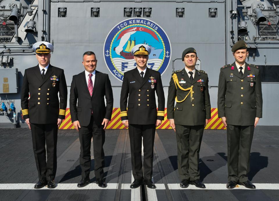 Εκεί ο Τούρκος Διοικητής της ΝΑΤΟϊκής Ναυτικής Δυνάμεως δέχτηκε στη «ναυαρχίδα» του τον Τούρκο Πρόξενο στη Θεσσαλονίκη και τον Τούρκο Ακόλουθο Αμύνης στην Αθήνα με τον Βοηθό του, ενώ ανταπέδωσε την επίσκεψη και στο Τουρκικό Προξενείο της πόλεως, όπως τουλάχιστον πληροφορηθήκαμε από σχετική ανάρτηση, συνοδευόμενη με τέσσερις φωτογραφίες από το τουρκικό Υπουργείο Αμύνης στο λογαριασμό του στο «Χ».