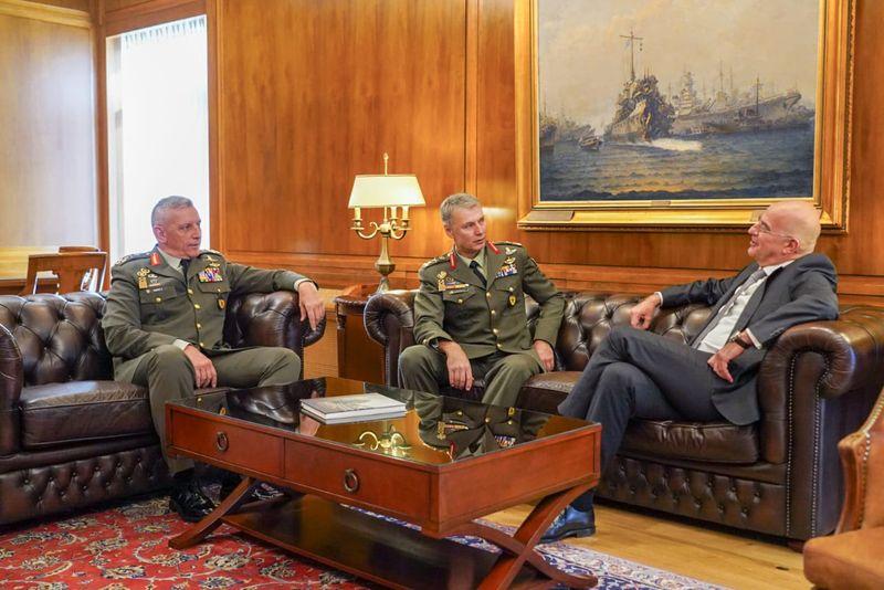Τέλος, μετά το πέρας της επισήμου επισκέψεώς του στο ΓΕΕΘΑ, οι δύο Αρχηγοί, μετέβησαν στο γραφείο του Υπουργού Εθνικής Αμύνης κ. Νίκου Δένδια με τον οποίο είχαν μία «εθιμοτυπικού» χαρακτήρος συνάντηση του νέου Α/ΓΕΕΦ μαζί του.
