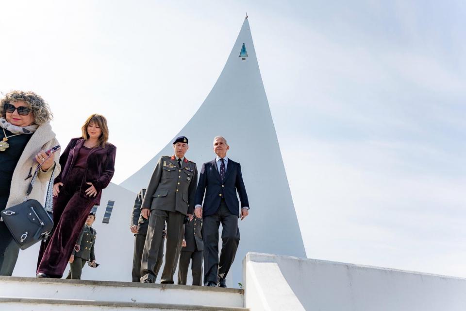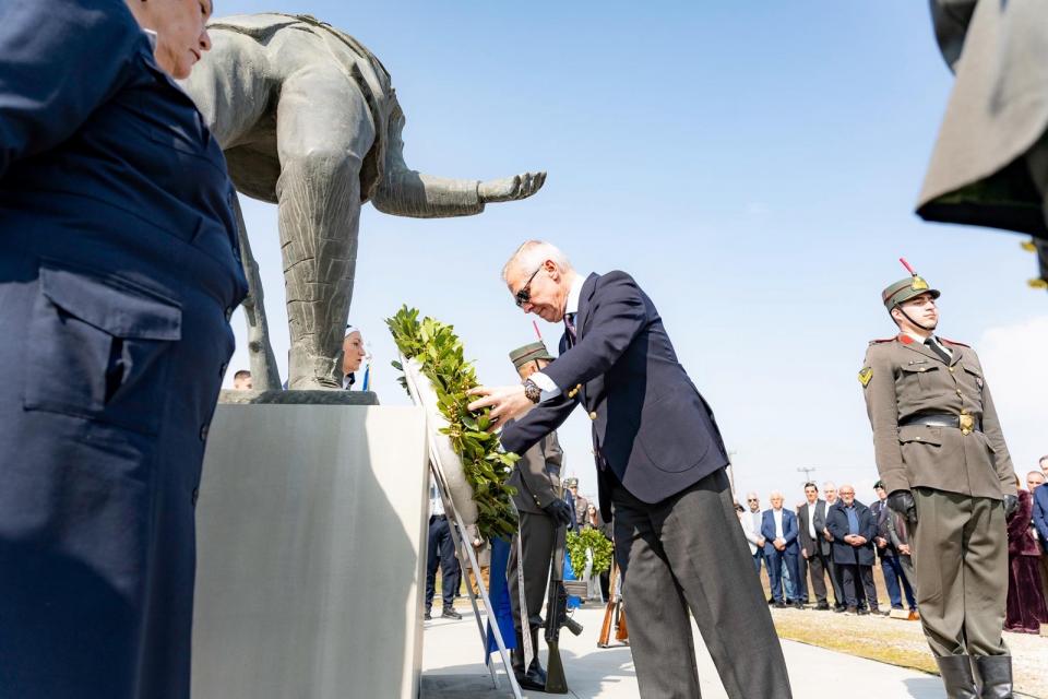 Στη συνέχεια συνοδευόμενος από τον Αρχηγό Τακτικής Αεροπορίας Αντιπτέραρχο (Ι) Παναγιώτη Γεωργακόπουλο μετέβη στο Μνημείο των Πεσόντων του Υψώματος «731», όπου τελέστηκε επιμνημόσυνη δέηση και καταθέσεις στεφάνων.
