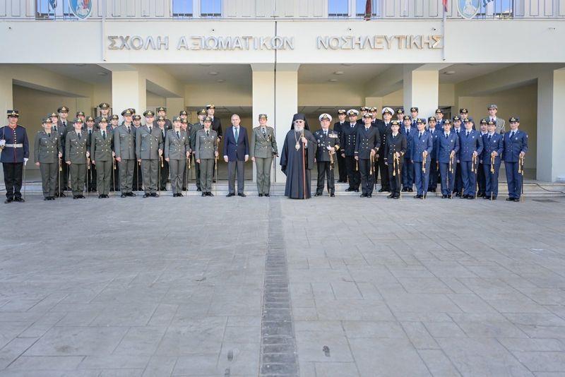 Η προαναφερθείσα τελετή πραγματοποιήθηκε στις εγκαταστάσεις της Σχολής στον Καρέα Αττικής ενώ στη δέηση χοροστάτησε ο Μητροπολίτης Καισαριανής, Βύρωνος και Υμηττού κ.κ. Δανιήλ. Παρέστησαν επίσης ο Υποστράτηγος Γεώργιος Ανδριώτης ως εκπρόσωπος του Α/ΓΕΣ Αντιστρατήγου Γεώργιου Κωστίδη, ο Διευθυντής του Ναυτικού Νοσοκομείου Αθηνών Αρχιπλοίαρχος (ΥΙ) Ιωάννης Σταυριανόπουλος ως εκπρόσωπος του Α/ΓΕΝ Αντιναυάρχου Δημήτριου-Ελευθέριου Κατάρα ΠΝ, η Διευθύντρια Νοσηλευτικής Υπηρεσίας του 251 ΓΝΑ Ταξίαρχος (ΥΝ) Αθηνά Καρυδάκη ως εκπρόσωπος του Α/ΓΕΑ Αντιπτεράρχου (Ι) Δημοσθένη Γρηγοριάδη, ο Διευθυντής της Διεύθυνσης Υγειονομικού του ΓΕΑ Ταξίαρχος (ΥΙ) Ιωάννης Καπίρης, η Διοικητής ΣΑΝ Ταξίαρχος (ΥΝ) Μαρία Γιαννοπούλου, εκπρόσωποι κομμάτων, Σωμάτων Ασφαλείας, εν ενεργεία και εν αποστρατεία αξιωματικοί, καθώς και συγγενείς των νέων αξιωματικών.