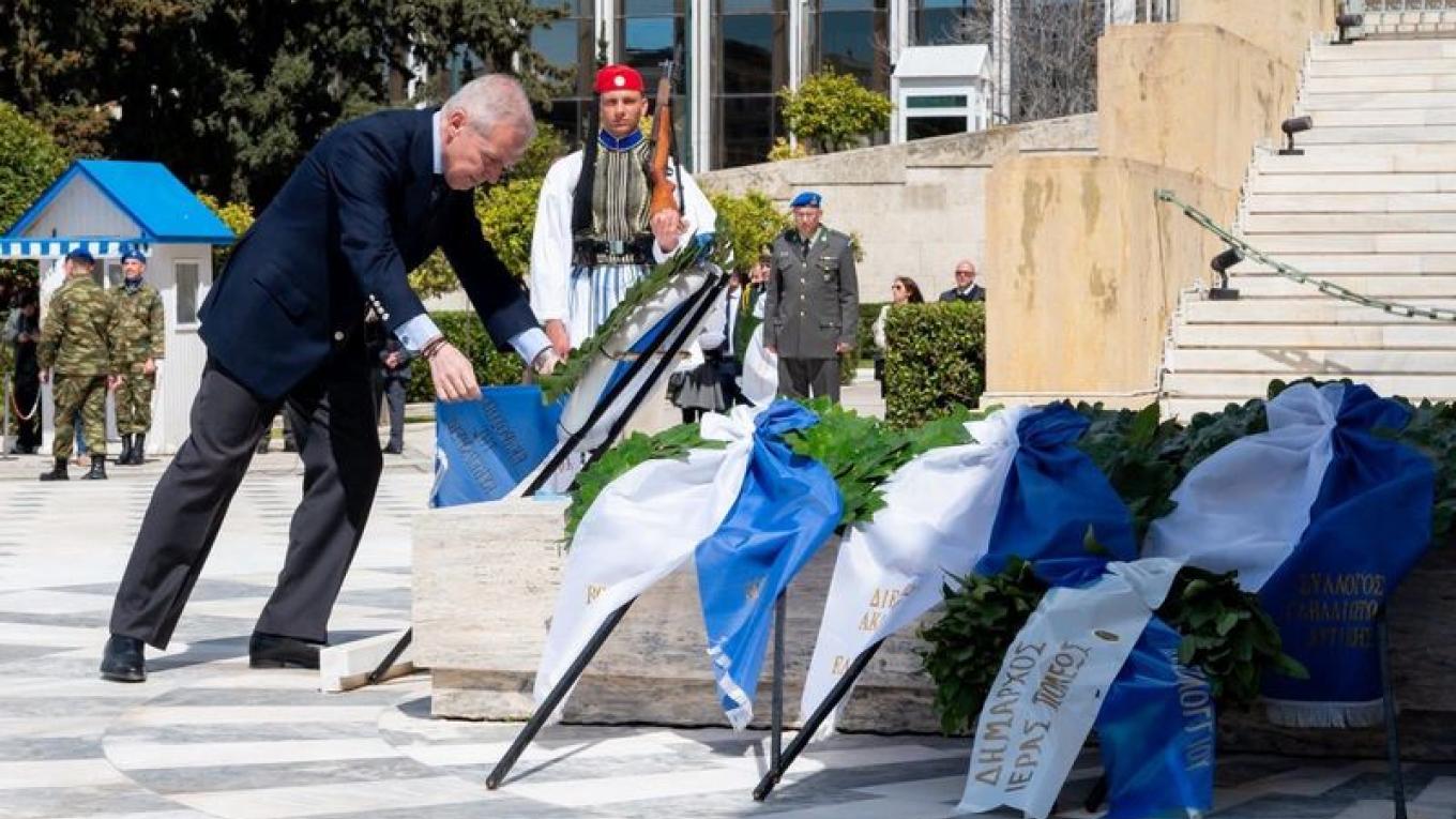 Αρχικώς ο ΥΦΕΘΑ παρέστη στη Δοξολογία στον Καθεδρικό Ναό Αθηνών, όπου τον πανηγυρικό της ημέρας εκφώνησε ο Επίτροπος Προεδρίας της Κυπριακής Δημοκρατίας κ. Μάριος Χαρτσιώτης και ακολούθησε κατάθεση στεφάνων στο Μνημείο Αγνώστου Στρατιώτου.