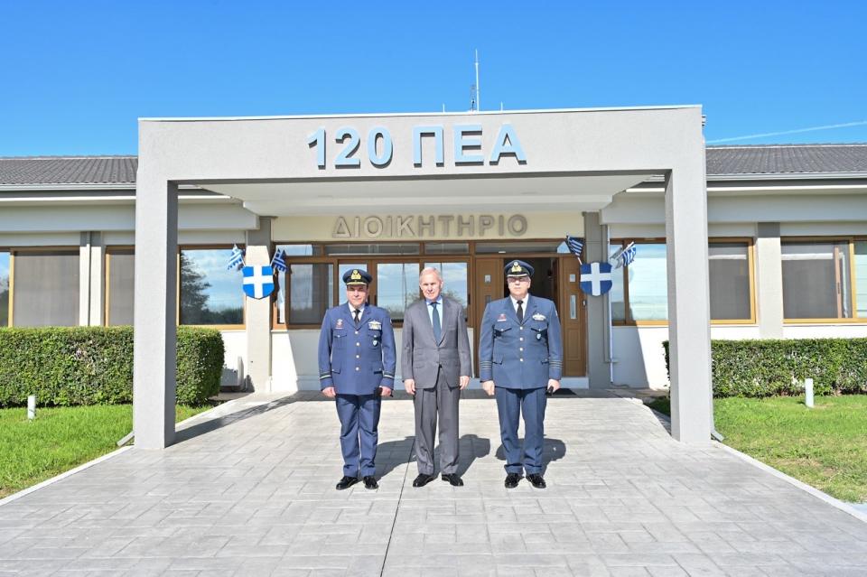 Ακολούθως, μετά το πέρας του τρισαγίου, ο κ. Δαβάκης επισκέφθηκε την 120 ΠΕΑ, όπου πραγματοποιούν την πτητική τους εκπαίδευση Έλληνες και ξένοι Ίκαροι. Εκεί τον υποδέχθηκαν ο Διοικητής της Διοικήσεως Αεροπορικής Εκπαιδεύσεως (ΔΑΕ) Υποπτέραρχος (Ι) Ιωάννης Ασημακόπουλος και ο Διοικητής της 120 ΠΕΑ Σμήναρχος (Ι) Μιχαήλ Κουκουβάς.