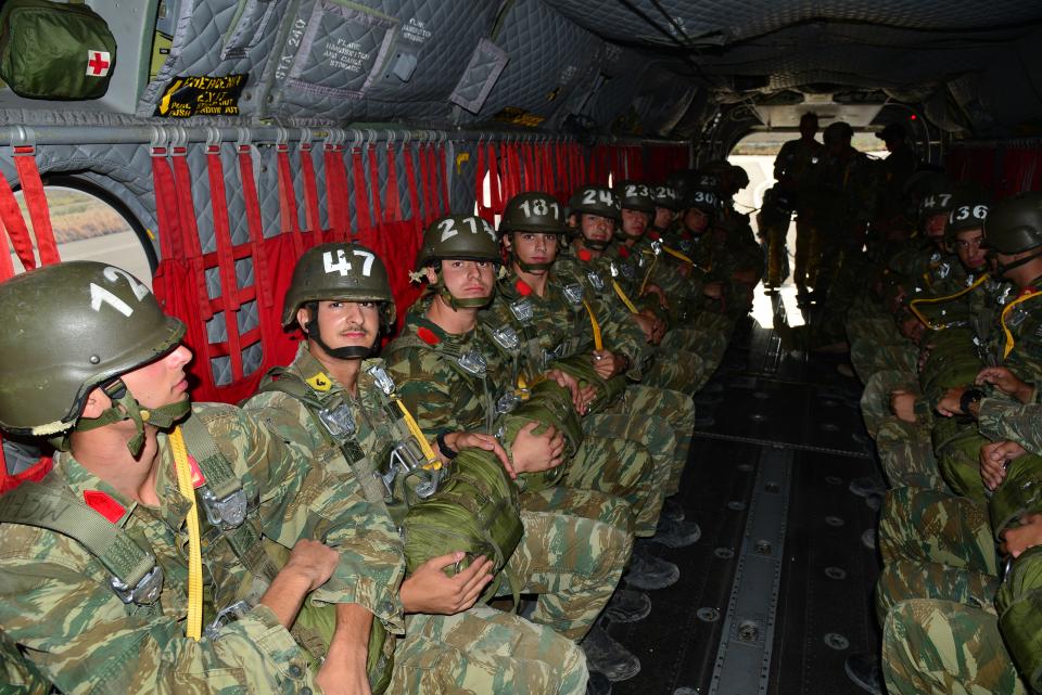 • Άλματα από μεταφορικό ελικόπτερο CH-47D Chinook του 4ου Τάγματος Ελικοπτέρων Αεροπορίας Στρατού (4ο ΤΕΑΣ).