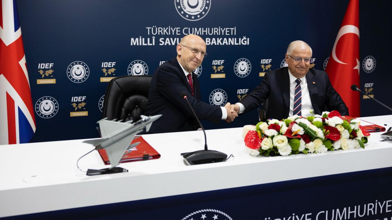 Πιο συγκεκριμένα, σήμερα στην Τουρκία, όπου πραγματοποιείται η μεγάλη έκθεση αμυντικών συστημάτων “IDEF 2025”, που παραδοσιακώς αποτελεί ένα πρώτης τάξεως «εκθετήριο» των προϊόντων της τουρκικής αμυντικής βιομηχανίας, και στο περιθώριο αυτής, υπογράφτηκε «Μνημόνιο Κατανοήσεως» (Memorandum of Understanding”/MOU) μεταξύ των Υπουργών Αμύνης της Τουρκίας και του Ηνωμένου Βασιλείου κ.κ. Γιασάρ Γκουλέρ και Τζων Χήλυ, για την απόκτηση 40 μαχητικών Typhoon/Eurofighter, που κατασκευάζονται στη Βρετανία και κρίσιμα απάρτιά τους κατασκευάζονται στη Γερμανία, οι οποίοι τόνισαν ότι η συμφωνία φέρνει ένα βήμα πιο κοντά την απόκτηση των μαχητικών και ότι ενισχύει τις διμερείς σχέσεις και την αεροπορική ισχύ του ΝΑΤΟ.