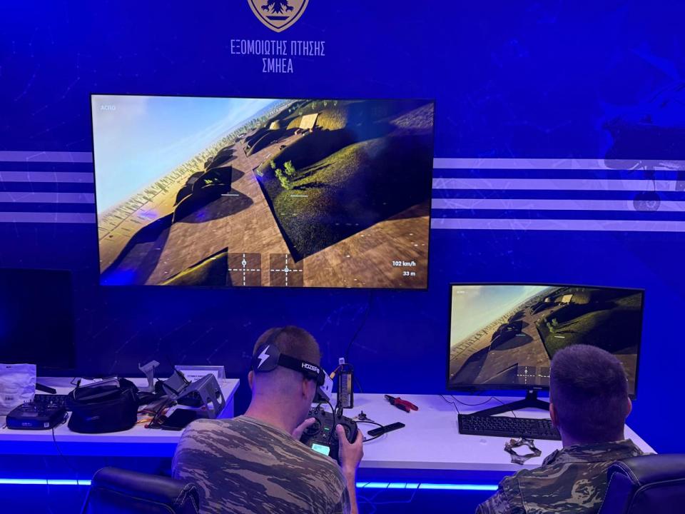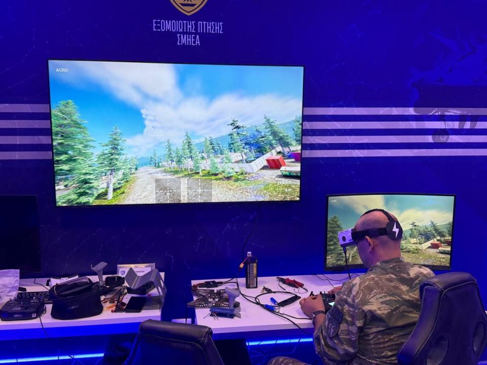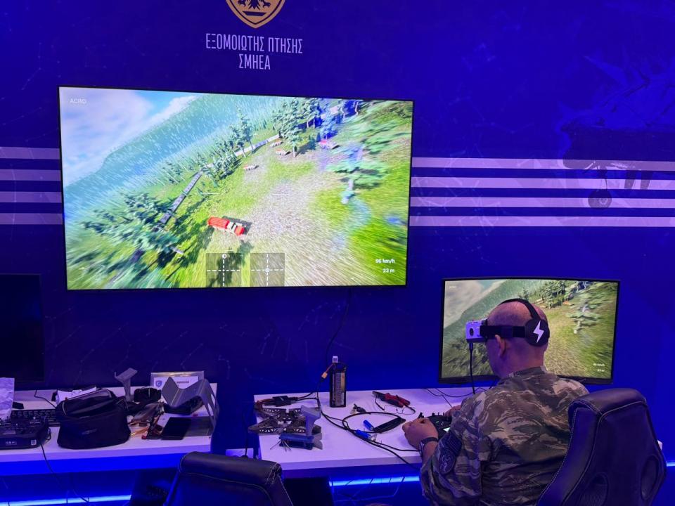 FPV: Εξομοιωτής εκπαιδεύσεως χειρισμού Πολυκόπτερων ή Συστημάτων μη Επανδρωμένων Αεροχημάτων τύπου FPV. Ο εξομοιωτής Σμήνους Μη Επανδρωμένων Αεροχημάτων επιτρέπει την εκπαίδευση των χειριστών του μέσω ρεαλιστικού περιβάλλοντος πτήσης. Μειώνει το χρόνο εκπαιδεύσεως και βελτιώνει τις αντιδράσεις του χειριστή σε πραγματικές συνθήκες.