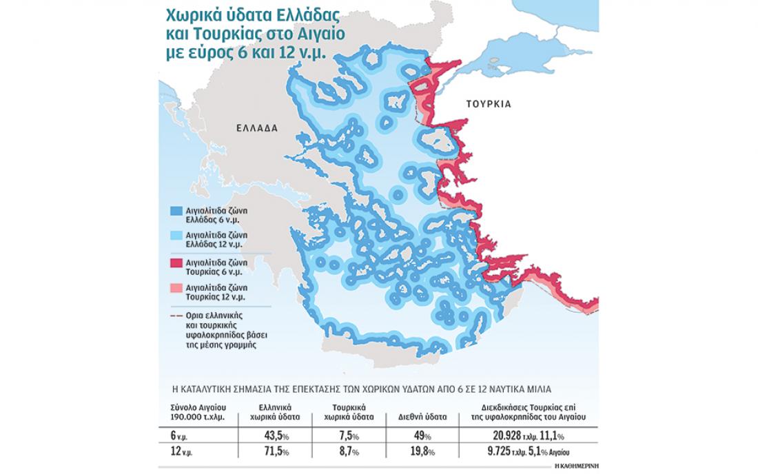 Πιθανή επέκταση των ελληνικών χωρικών υδάτων στα 12 μίλια θα έχει καταλυτικά αποτελέσματα στις περισσότερες από τις τουρκικές διεκδικήσεις στο Αιγαίο: