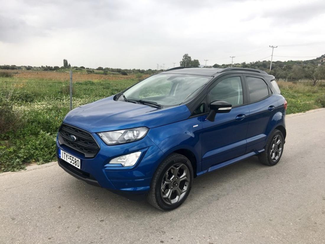Το EcoSport στην έκδοση ST-Line, δείχνει πιο επιθετικό κυρίως από τη μάσκα αλλά και τα πλευρικά μαρσπιέ, τους πλευρικούς καθρέπτες, τις ζάντες αλουμινίου και το δερμάτινο τιμόνι . Το αυτοκίνητο ανοίγει με τηλεχειρισμό και σύστημα χωρίς κλειδί FordKeyFree. Χωρίς κλειδί ξεκινάει και η λειτουργία του κινητήρα.