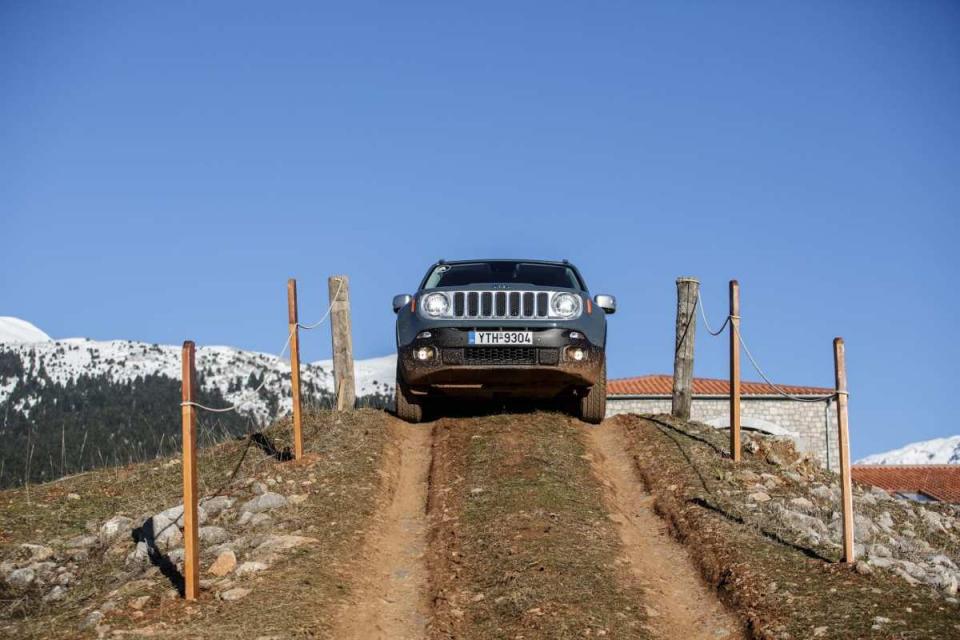 Στο Λιβάδι οδηγήσαμε τα δίλιτρα Renegade με το 9άρι αυτόματο κιβώτιο και το εξελιγμένο σύστημα μετάδοσης Jeep Active Drive που μπορεί να μεταδώσει ακόμα και σε ένα τροχό το 100% της ροπής. Σημειώστε ότι το Renegade είναι το πρώτο Jeep που εξοπλίζεται με τα αυτορυθμιζόμενα αμορτισέρ της koni.