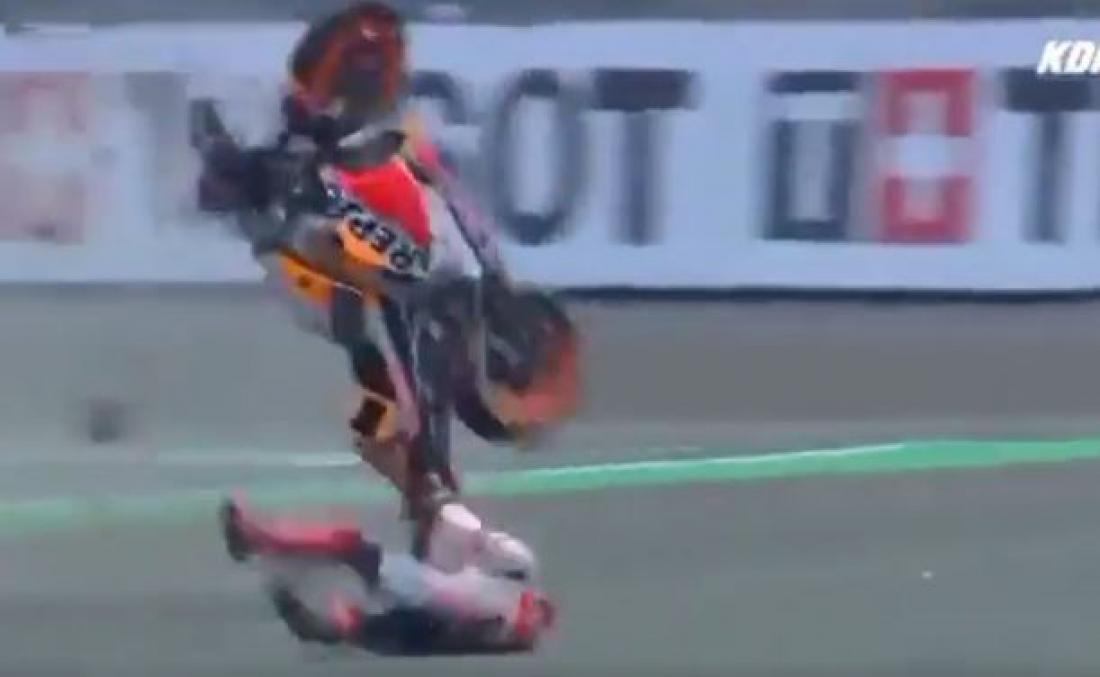 Ήταν στην 7η στροφή, όταν ο Ισπανός βρέθηκε να στριφογυρίζει στον αέρα, όπως και η Honda που οδηγούσε, για να προσγειωθεί στην αριστερή πλευρά του, ενώ έδειχνε ζαλισμένος, καθώς είχε χτυπήσει και στο κεφάλι.
